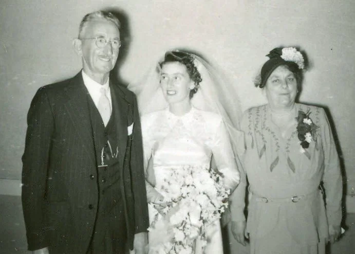 Bill, daughter Gwen at her wedding and Gwen’s Mum Irene (1951)